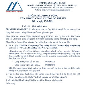 Công ty Cổ phần Đầu tư Địa ốc Mạnh Hùng Hà Nam, thông báo lịch nghỉ Tết nguyên đán