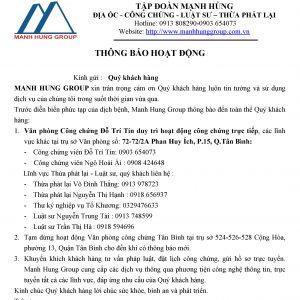 Công ty Cổ phần Đầu tư Địa ốc Mạnh Hùng Hà Nam, thông báo lịch nghỉ Tết nguyên đán